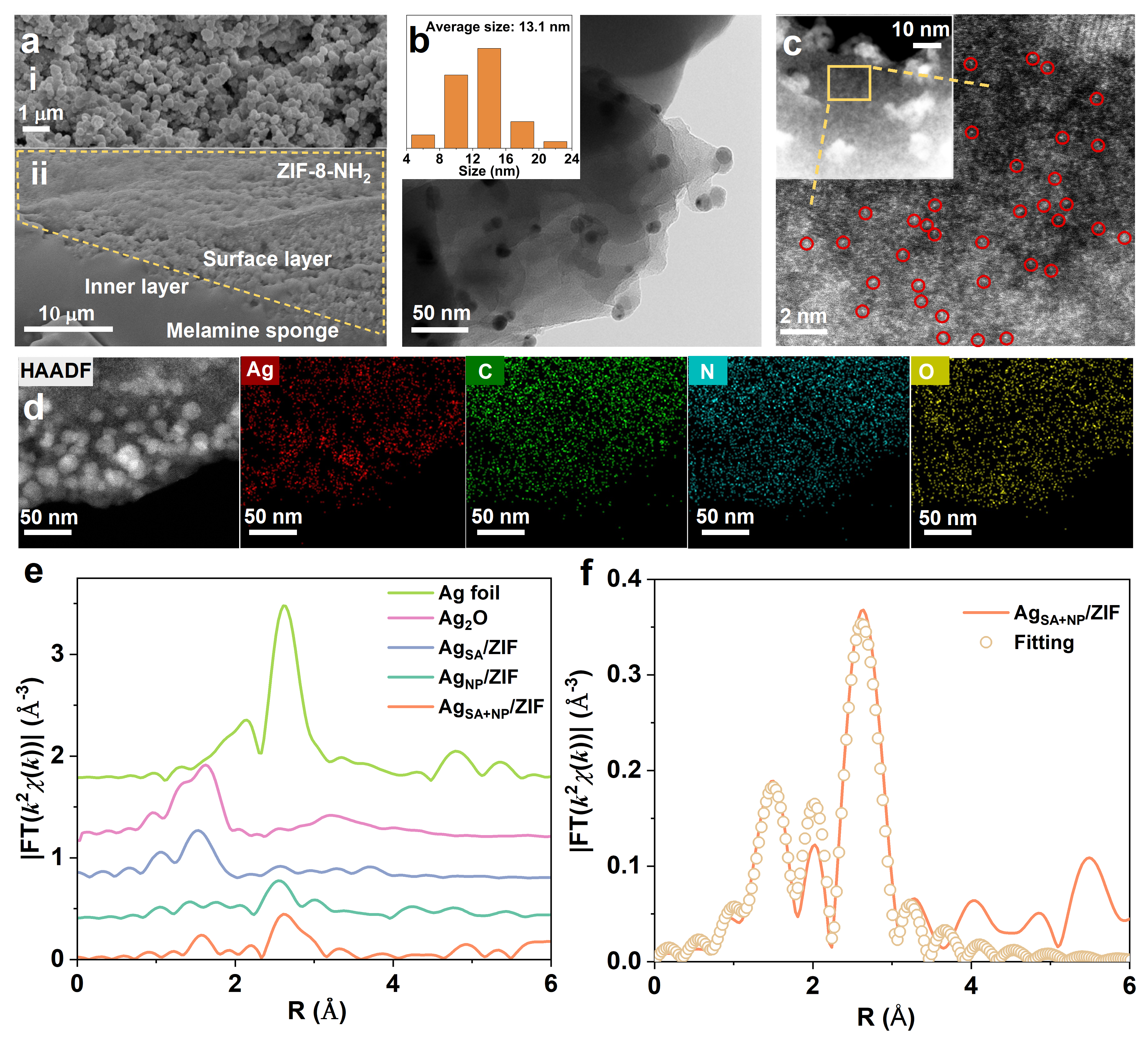 图2 AgSA+NP/ZIF的结构表征。