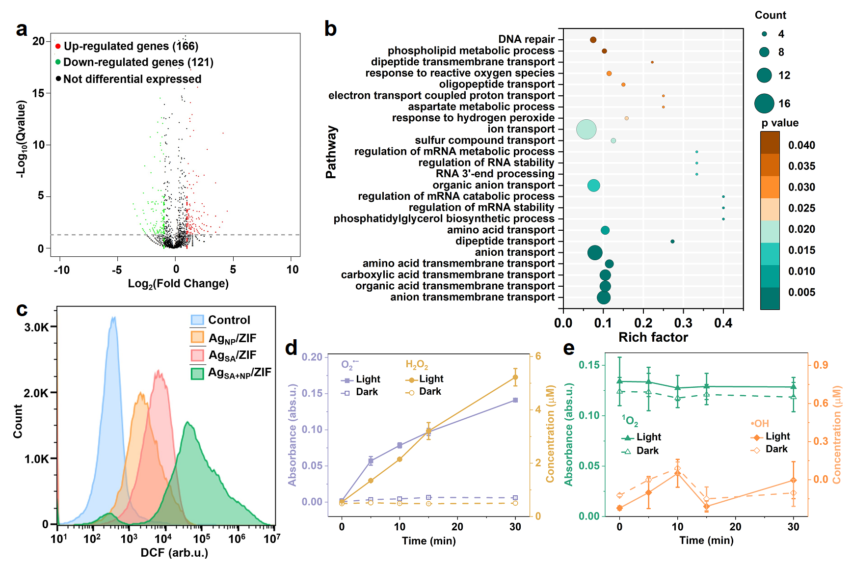 在消毒机理方面,掲示了银单原子和银纳米颗粒的协同作用是提高水消毒效率的关键。银单原子通过形成Ag-N电荷转移桥梁,有效延长了光生载流子的寿命,从而增强了ROS的生成;转录组学结果显示,银纳米颗粒的等离激元光热效应降低了大肠杆菌对ROS的抗性,损伤其DNA修复能力。该机制的协同效应显著提高了水消毒过程中细菌的灭活效率,为实际水体中具有压力抗性细菌的灭活提供了新的思路和方法。