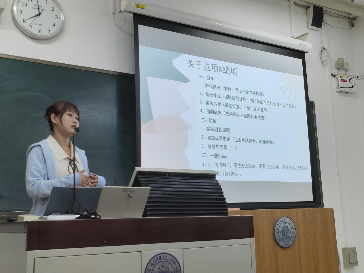 第三位分享者是心理学部2020级刘芳宇,她主要从实践前、中、后三个部分具体地阐述了她们实践队是如何开展实践活动的,并分享了一些有用的tips。