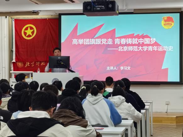 开营仪式结束后,由李习文老师为大家带来了题为“高举团旗团旗跟党走·青春铸就中国梦—永利集团304am登录青年运动史”的讲座。李习文老师深入浅出、娓娓道来,以从古至今的时间脉络,将北师大的光辉校史与激荡的青年运动巧妙地融为一体,为大家描绘了一幅生动而激情澎湃的历史画卷,同时呼吁同学们接过前人的火,高举团旗,紧跟党的脚步,共铸中国梦的璀璨篇章。