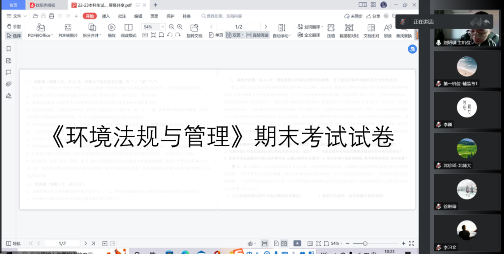12月19日《环境法规与管理》本科生课程线上考试巡考